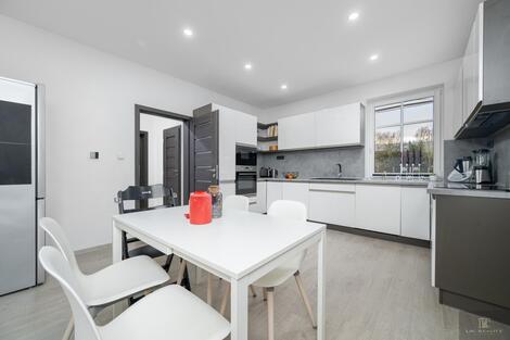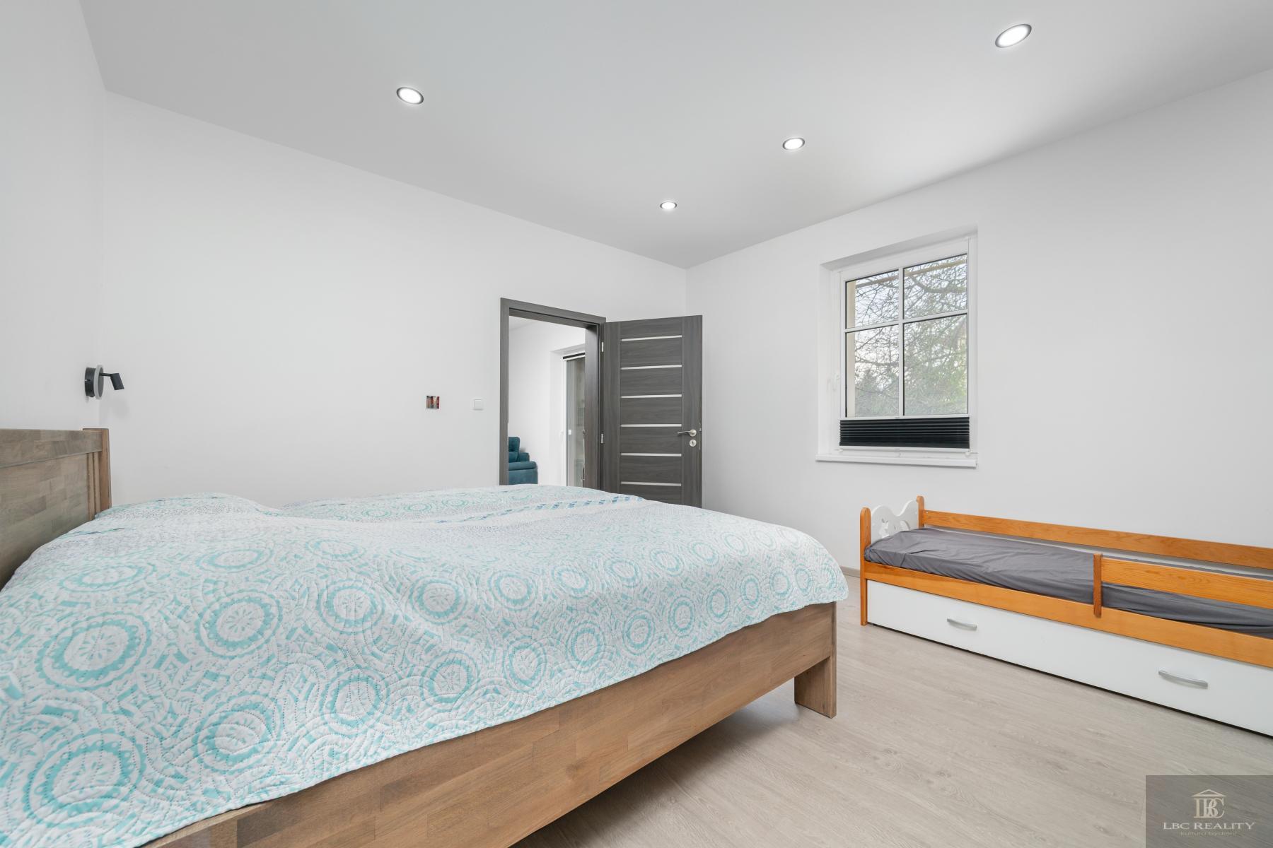 Exkluzivně nabízíme nadstandardní a stylově zrekonstruovaný byt 3+1 (112 m2) s přímým vstupem na zahradu. K bytu náleží dvě parkovací místa, sklepní kóje. Byt se nachází v menším bytovém domě o pěti jednotkách, v příjemné lokalitě s výbornou dostupností MHD (tramvajová zastávka kousek od domu) a občanskou vybaveností v docházkové vzdálenosti.. Dispozice a stav bytu: Byt prošel kompletní rekonstrukcí dokončenou v lednu 2022, ve skutečnosti se jednalo o výstavbu nového bytu v rámci původního skeletu. Vše bylo řešeno na míru a s důrazem na funkčnost a detail. Nové rozvody elektřiny i vody, podlahy, podhledy, kvalitní kuchyňská linka na míru s přípravou na americkou lednici, velká koupelna s vanou i sprchovým koutem, 2 praktické šatny, spíž, sklepní kóje, elektrické podlahové topení s termostaty v každé místnosti, bojler pro TUV. Byt je velmi prostorný, vzdušný a světlý, s možností úpravy dispozice (např. zrušení průchodu mezi ložnicí a dětským pokojem). V současnosti je udržován v nadstandardním stavu. Výhody bytu: - dispozice 3+1 (112 m2) - přímý vstup z bytu na zahradu (aktuálně po dočasných schodech) - 2 šatny a 1 malá místnost vedle kuchyně - 2 vlastní parkovací stání - krbová kamna (možnost úpravy komínu dle dohody) - vlastní měřiče spotřeby (voda, elektřina) - vysokorychlostní internet (Starnet, možnost O2) - zahrada s ohništěm, třešní a prostorem pro klid a relax - nízký fond oprav, ale fungující SVJ (založeno cca před 1,5 rokem) - dům je zateplen (12 cm polystyren), drenáž kolem objektu zajišťuje odvodnění - byt není zatížen hypotékou ihned připraven k převodu a případnému financování novou hypotékou - posudek od stavebního inspektora je k dispozici! Pokud hledáte velký, moderně zrekonstruovaný byt s charakterem rodinného domu, zahradou, vlastním parkováním a výbornou dostupností, je tento byt skvělou volbou. Výhodou je také individuální styl rekonstrukce, praktická dispozice a atmosféra menšího bytového domu se vstřícnými sousedy.