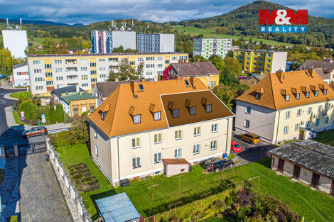 Byt včetně vlastní zahrady v malém bytovém domě v klidné části Cvikova. Podkrovní byt se v současné době využívá jako 3+1, z komory v bytě se udělal další pokoj. K bytu také náleží velký sklep - 9 m2 a venkovní kůlna - 8 m2, podíl na společné zahradě a navíc i vlastní zahrada. Samotná plocha bytu je 56 m2 (48 m2), včetně příslušenství 65 m2 + kůlna. Vytápění bytu je zajištěno plynovým kotlem, ohřev vody bojlerem. Dům je zateplen a je zde hotová střecha. Parkování je možné přímo na pozemku u domu. Podkroví je zatepleno a bylo zde před několika lety řešeno topení, el. rozvody, odpady, atd. Dům nabízí klidné bydlení v blízkosti centra města s veškerou občanskou vybaveností - MŠ, ZŠ, obchody, zdravotní středisko, pošta. Cvikov se nachází na mezinárodní silnici E442, 5min do České Lípy a 30 min do města Liberec. Byt je vhodný jak pro vlastní bydlení, tak jako investice s možností pronájmu. Nájemníka Vám zajistíme. V případě zájmu neváhejte kontaktovat realitního makléře.