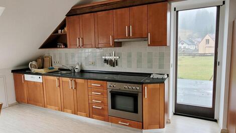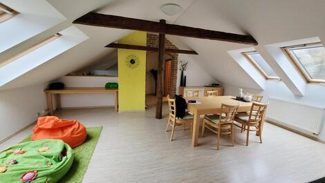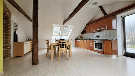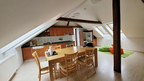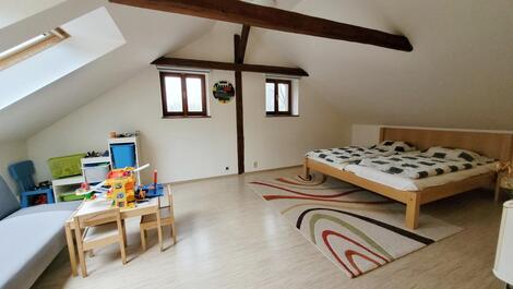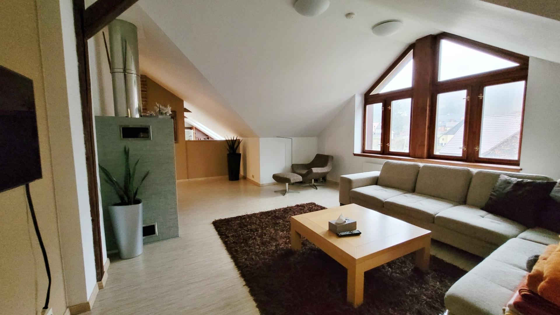 Exkluzivně nabízíme k prodej kompletně zařízeného bytu o dispozici 3+1 a celkové rozloze 141,9 m2 (obytná plocha 123,7 m2) jehož příslušenství tvoří terasa 34,3 m2 a sklep o rozloze 35,6 m2 v klidné části obce Bedřichov. Příjezd po zpevněné silnici, vlastní parkoviště pro rezidenty. Výměry místností: pokoj s jídelnou a kuchyní 65,4m2, dětský pokoj 25,1 m2, ložnice 19,3 m2, koupelna s WC 8,5 m2, prádelna s druhým WC 5,4 m2, chodba a schodiště 10,8 m2, chodba 7,4 m2 a dále sklep přístupný ze zahrady 35,6 m2 /sklep je sdílený a možné je využívat jej z jedné poloviny/ a privátní terasa 34,3 m2). Vstup do bytu se nachází ve druhém nadzemním podlaží a v tomto podlaží se nachází pouze předsíň se schodištěm do 3.podlaží ve kterém se nachází celý byt (velmi klidný podkrovní byt bez přímých sousedů). Z inženýrských sítí je k dispozici přípojka elektřiny, vodovod, kanalizace. Topení zajištěno kombinací vlastního elektrokotle s etážovým rozvodem a krbových kamen, ohřev vody zajištěn vlastním elektrickým 150 litrovým bojlerem. Připojení k internetu 02 nebo wifi síť místních poskytovatelů. Měsíční náklady .ve výši 3.900,-Kč z čehož je 2.485,-Kč fond oprav + elektřina, dle spotřeby - dodavatel ČEZ + internet. Energetická náročnost budovy nebyla doložena a z toho důvodu je uvedena hodnota G. Dům byl kompletně rekonstruován v roce 2007 a v roce 2010 byla dokončena výstavba předmětného bytu. Společenství vlastníků nemá žádné dluhy a na jaře bude probíhat oprava hydroizolace terasy a dále budou opraveny/vyměněny okapové žlaby. Úklid společných částí domu, úklid sněhu zajištěn správní firmou. V obci Bedřichov je možné realizovat širokou škálu aktivit, jako je například sjezdové lyžování, vyhlášené běžecké lyžování, snowboarding a v létě je místo ideální pro turistiku, cykloturistiku a mnoho dalších aktivit. V případě únavy se v blízkém okolí nachází wellness resort poskytující veškerý servis. Výborná dostupnost Jablonce nad Nisou, Liberce a díky dálnici je dobře dostupné hlavní město Praha. Pro více informací či se zájmem o prohlídku nás neváhejte kontaktovat. <a href="https://www.eurobydleni.cz/byty/5_kk/praha-8/obec-bohnice/prodej/"><strong>Prodej bytu 5+kk Praha 8, Bohnice</strong></a>