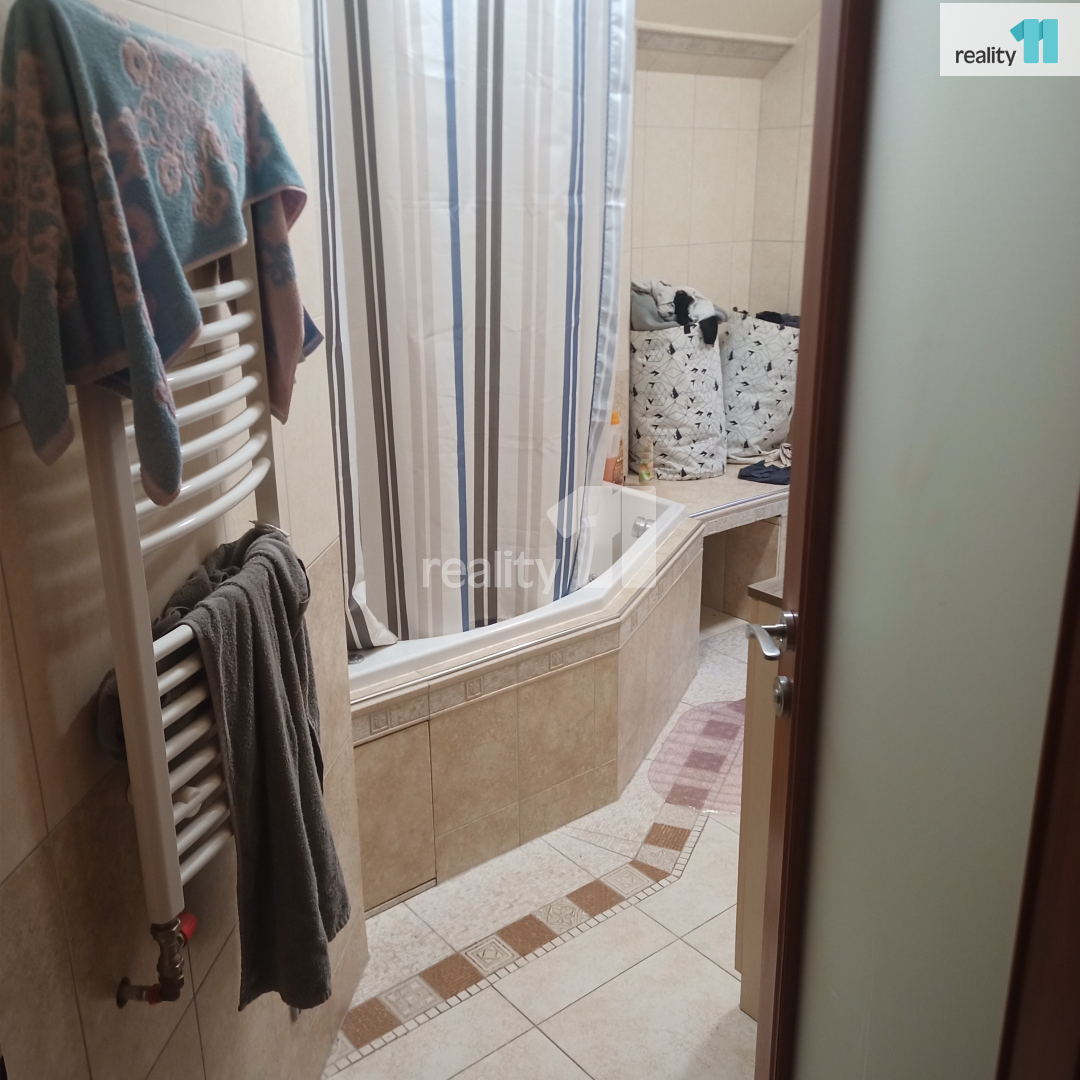 Pronájem prostorného apartmánu 4+1 s vířivou vanou a parkováním Nabízím k dlouhodobému pronájmu prostorný apartmán ve 2. patře rodinného domu. Vstup do apartmánu je z 1. podlaží, kde se nachází samostatná šatna a schodiště vedoucí přímo do bytu. Dispozice: Zařízená kuchyně s kuchyňskou linkou, propojená s otevřeným a světlým obývacím pokojem. Z chodby jsou tři samostatné pokoje + jeden menší průchozí pokoj vhodný jako pracovna nebo šatna. Koupelna s vířivou vanou, umyvadlem a přípojkou na pračku. Samostatné WC s bidetem. Byt je vhodný pro náročné nájemníky hledající komfortní bydlení v klidné lokalitě. Parkování je možné přímo u domu pro 2 osobní automobily, po dohodě i více. Ev. číslo: 27822. Energetický štítek: G