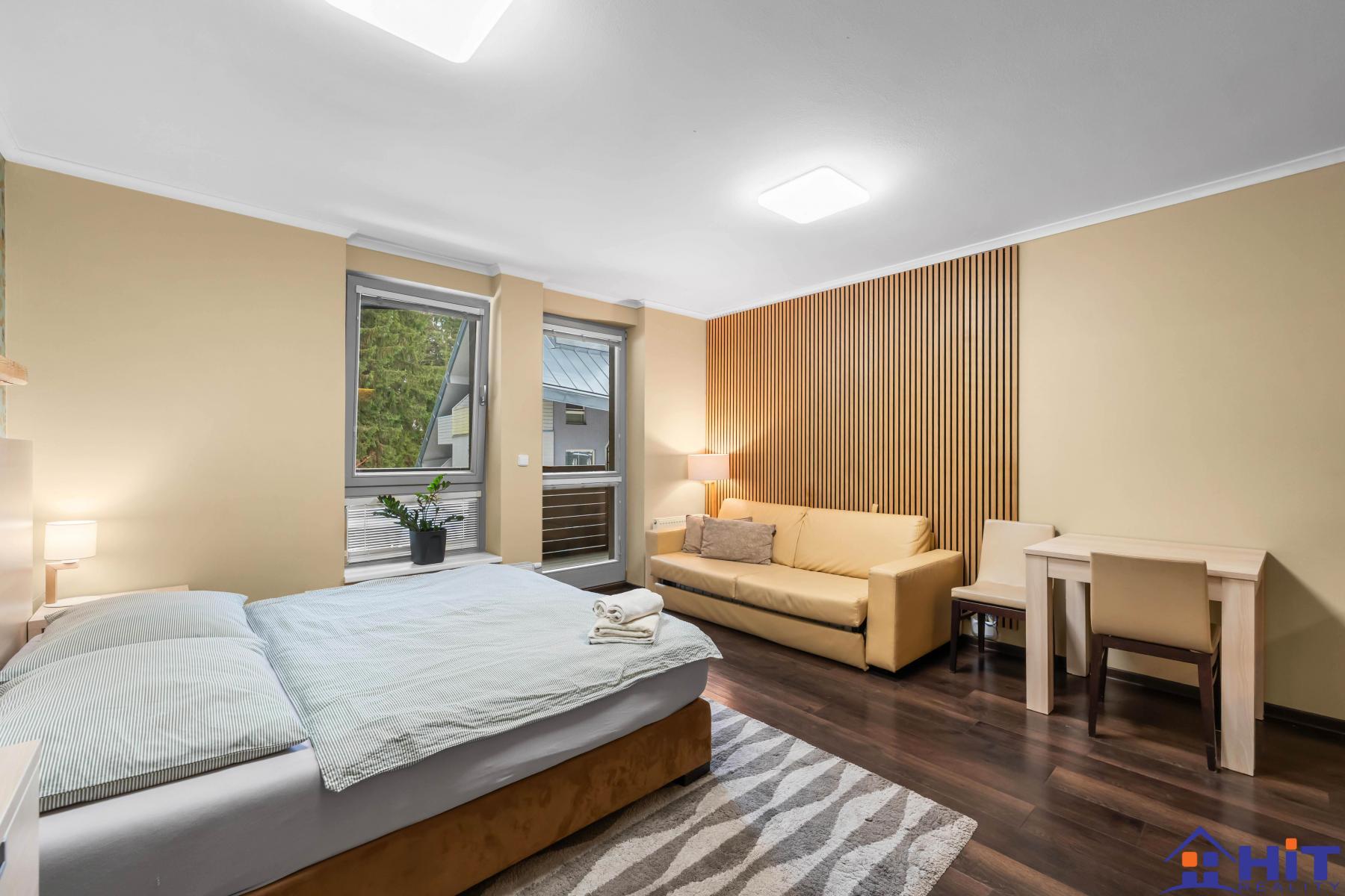 Nabízíme k prodeji zavedený investiční apartmán 1+kk o podlahové ploše 36,7 m2 (užitná plocha 28 m2) s balkonem 5,7 m2 a sklepem 3 m2 v oblíbené horské lokalitě Harrachov. Jednotka se nachází ve 2. nadzemním podlaží třípodlažního domu s výtahem a je orientována na jih. Dispozici tvoří obytný prostor o velikosti 21,9 m2, vstupní chodba 3,6 m2 a koupelna se sprchovým koutem a WC o velikosti 2,5 m2. Z obývací části je přístup na prostorný balkon s výhledem do okolní přírody. K bytu náleží vlastní sklep a vyhrazené venkovní parkovací stání přímo pro tento apartmán. Apartmán je plně vybaven a připraven k okamžitému pokračování v pronájmu. Součástí prodeje je kompletní zařízení: dvoulůžková postel, rozkládací pohovka s plnohodnotnou matrací, kuchyňská linka s vestavnou lednicí, varnou deskou a mikrovlnnou troubou, jídelní stůl se židlemi, komoda i další vybavení potřebné pro krátkodobé ubytování. Jedná se o stabilně fungující investiční jednotku se zavedeným provozem na platformách Booking a Airbnb. Přehled měsíčních výnosů jsme schopni vážným zájemcům doložit včetně detailního cashflow. Apartmán lze zároveň kdykoliv vyblokovat pro vlastní potřebu. Harrachov patří mezi nejvyhledávanější horská střediska v České republice s celoročním využitím. V zimě nabízí sjezdové i běžecké tratě, skokanské můstky, ski areály a napojení na hřebeny Krkonoš. V létě láká turistika, cyklostezky, Mumlavské vodopády či výlety na Čertovu horu. V obci je kompletní občanská vybavenost včetně restaurací, obchodů, lékaře i služeb. Díky stabilní návštěvnosti má lokalita dlouhodobě velmi dobrý investiční potenciál, zejména v období zimní a letní sezóny. Tato nemovitost představuje ideální kombinaci osobního horského zázemí a výnosové investice. Pro detailní podklady nebo sjednání osobní prohlídky nás neváhejte kontaktovat. <a href="https://www.eurobydleni.cz/komercni-nemovitosti/obchodni-prostor/praha-6/obec-brevnov/prodej/"><strong>Prodej obchodních prostor Praha 6, Břevnov</strong></a>