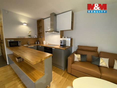 Hledáte pronájem bytu bez dalších nutných investic do vybavení? Tak právě pro Vás máme v nabídce luxusní mezonetový byt, dispozice 2+kk, v centru města Jablonce nad Nisou. Vstupní chodba s úložným prostorem. Moderní kuchyně s jídelním koutem plně vybavená veškerými spotřebiči včetně kávovaru. Obývací část se sedací soupravou, nábytkem na míru a TV. Spodní koupelna s umyvadlem, toaletou, pračkou se sušičkou a podlahovým topením. Vstup do podkroví dřevěným schodištěm. V podkroví koupelna s podlahovým topením, vanou, umyvadlem a topným tělesem. Ložnice s dvojlůžkem a TV. V bytě dřevěné podlahy a okna s vnitřními roletami. Vytápění vlastním plynovým kotlem, ohřev vody bojler. Vstup do domu na čip. K bytu jedno parkovací místo za bránou na el. pohon (1000,- kč/měs). V domě k užívání vybavené fitness studio. Objekt střežen kamerovým systémem. Byt ihned k nastěhování. Nájemné 17.000,- + služby (pro 2 osoby 5000,-) + kauce a provize RK.