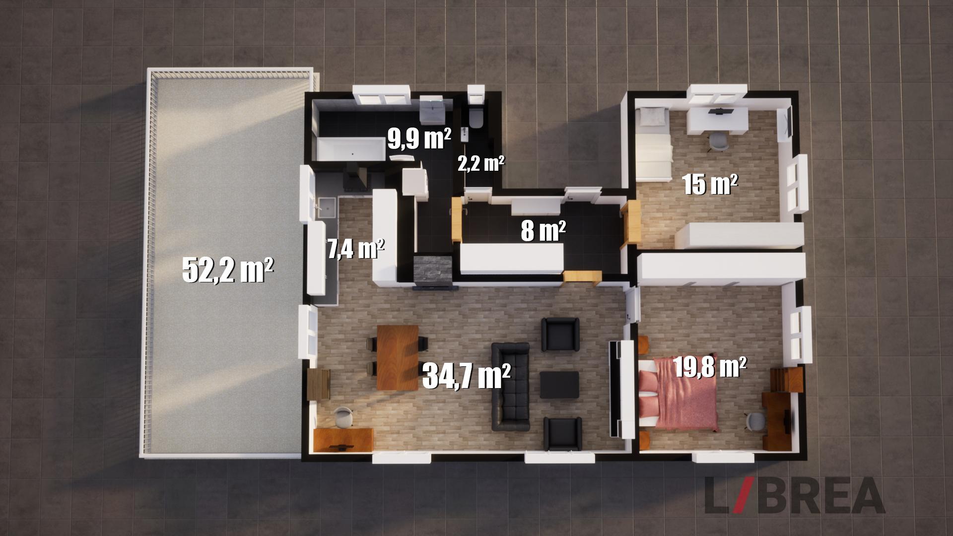 Výhradně Vám nabízíme ke koupi moderní byt 3+1 s velkou terasou (podlahová plocha bytu je 97 m2 + terasa 52 m2) ve zrekonstruovaném bytovém domě v Liberci-Ruprechticích. K bytu náleží také jedno vymezené venkovní parkovací stání vedle domu, dále samostatná garáž pro 2 auta a prostorná sklepní kóje. Vjezd k domu je opatřen dálkově ovládanými pojezdovými vraty. Velkou výhodou pro budoucí majitele tohoto bytu je zahrada ve sdíleném užívání majitelů 3 bytových jednotek. Byt je umístěn ve zvýšeném 1. podlaží s výhledem do ulice i do zahrady. Dispozice bytu: vstupní chodba s věstavenými skříněmi, obývací pokoj z něhož se vstupuje přímo na terasu, kuchyňský kout, ložnice s věstavěnými skříněmi, koupelna, samostatné WC a prostorná sklepní kóje. Kuchyňská linka je vyrobena na míru, její součástí je vestavná lednice s mrazničkou, samostatný vestavný mrazák, myčka, elektrická trouba a varná plynová deska, mikrovlnná trouba a digestoř. Vytápění bytu je zajištěno plynovým kondenzačním kotlem, který je umístěný mimo byt (ve sklepních prostorách). Samotný bytový dům má 3 podlaží a původně se jednalo o prvorepublikou vilku. Bytová jednotka je v osobním vlastnictví. Měsíční předpis záloh za energie (elektřina, voda, plyn) je cca 5.500 Kč. Byt bude volný k nastěhování dle dohody. V případě zájmu o prohlídku kontaktujte prosím našeho realitního makléře.